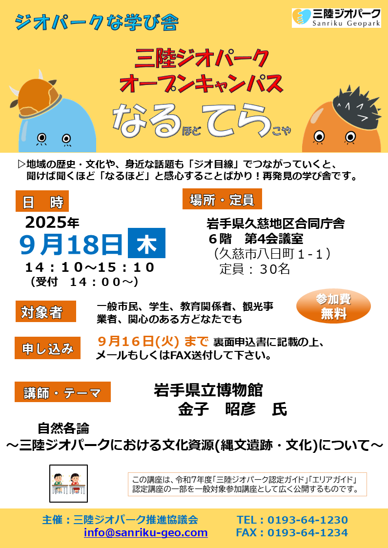 三陸ジオパークが実施している各講座では、一般の方を対象に参加者募集をしています!